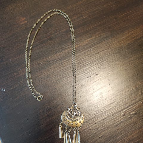 Melkein uudenveroinen Kalevalan pronssinen Kuutar-kaulakoru. Lukossa hieman värimuutosta. Alkuperäinen rasia ja käyttöohje mukana, hyvässä kunnossa.