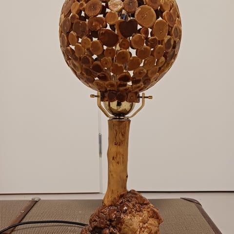 Tyylikäs pahkavalaisin, varmasti uniikki. Siistissä kunnossa ja toimii. Nykyaikainen pistoke. Varjostimessa vähän painaumia muuta johtuu siisti. Varjostimen saa mukaan jos haluaa.