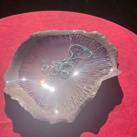 Käsintehty epoksialusta (halkaisija 15 cm). Sopii koruille, kynttilänalusena tai lasinalusena. Jokainen kappale on uniikki.