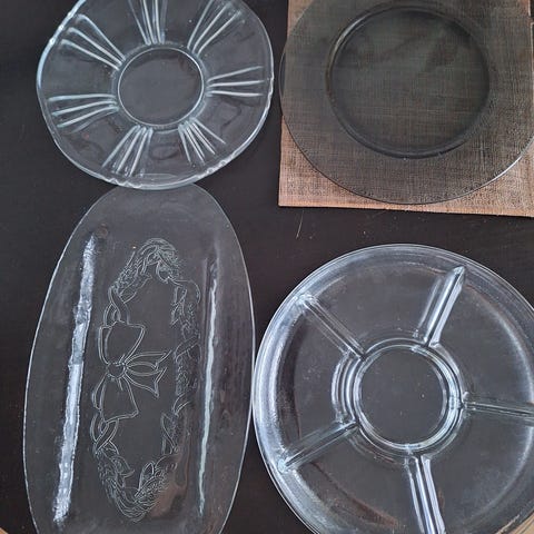 Myydään 5 kpl erilaisia tarjoilulautasia. Riihimäen lasi kehrä -sarjaa, Karhulan lasi jne.