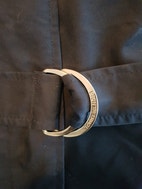 Kultaisessa Vyön soljessa lukee tommi hilfiger, napeissa, kauluksen kultaisessa metallissa ja takin sisäpuolella.