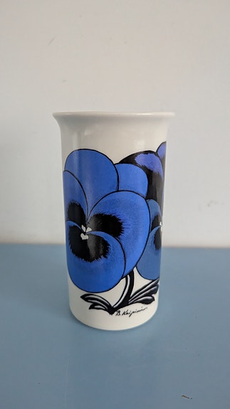Kunto kuvien mukainen. Vasemmasta reunasta lohjennut palanen, mikä liimattu paikoille. Näkyy viimeisessä kuvassa. Ajan tuomaa patinaa / kulumaa.