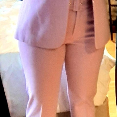Uudenveroinen Espritin jakkupuku. Jakku kokoa 38, housut ja puolihame 42. Housut käyttämättämät, niissä hintalaput vielä kiinni. Hameessa ja housuissa vyötäisillä metallisoljet. Hameessa vuori. Polyesteri-viskoosi-elastaania. Uutena ostettu, työpaikan tilaisuudessa kerran pidetty. Valitettavasti itselle nafti.