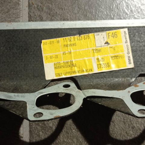 BMW E30 uusi etuputki autoihin M10 moottorilla. Huom! Näiden putkistot ovat perinteisesti olleet varaosamyyjän painajainen, koska eri valmistajien putket sopivat huonosti keskenään yhteen. Tämäkin on jokin korjausputkena myyty eli liitos seuraavaan osaan on muhvilla, kun alkuperäisessä putkessa se on laipalla. Tarkoituksena ollut ilmeisesti tehdä putki, jolla on samalla helpompi korjata ruostunut kartiolaippa pois päiväjärjestyksestä.