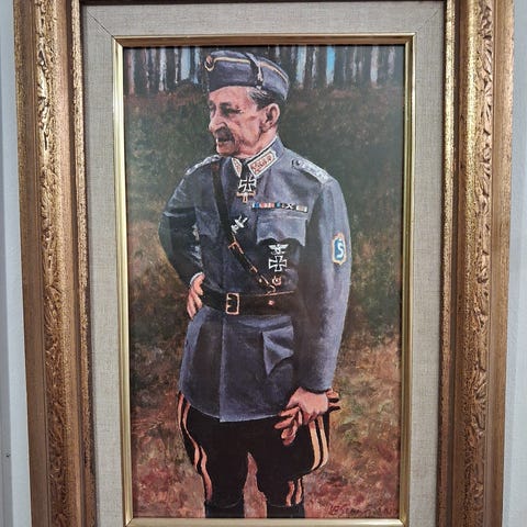 J.Napolan tekemä 72*94 Mannerheim öljyvärityö kankaalle. Nouto tai lähetys( matkahuolto ). Katso myös muut ilmoitukseni klikkaamalla profiilistani( yli 500 taulua ).
