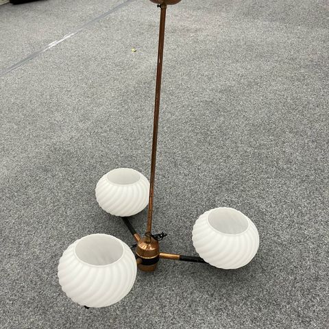 70-luvun viisihaarainen Valinten valmistama kattovalaisin. Varjostimet muovia ja runko metallia.