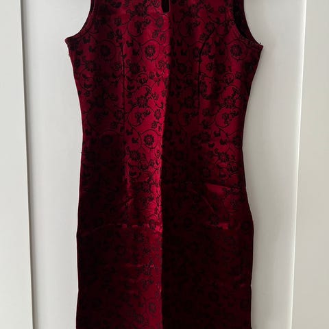 Serpentiinistä ostettu punainen juhlamekko. Ei ole kokomerkintää, mutta takana olevilla nauhoilla voi säätää kokoa. Itse olen käyttänyt xs/s kokoisena. Käytetty pari kertaa, säilytyksessä vain ryppyyntynyt.