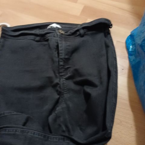 Farkut joissa niittejä ja ohuemmat housut vetoketjutaskuilla