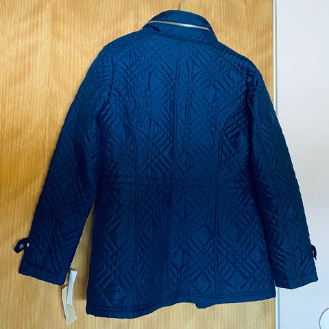Merkkitakki! Naisellisen kaunis kevyttoppatakki, tumman sininen.