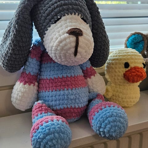 Uusi virkattu pieni pehmolelu, amigurumi Heppa puuvillasta.