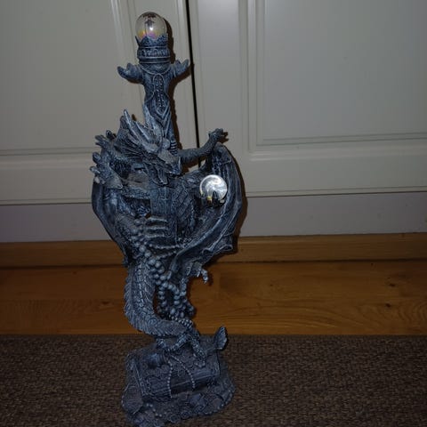 Myydään kuvan mukainen lohikäärmepatsas. Kuvissa hieman pölyisiä, mutta olleet aina vitriinissä. Korkeus 11cm, syvyys 6cm ja leveys 10cm. Postitus onnistuu myös normi postin, matkahuollon tai ärrä-paketin kautta.