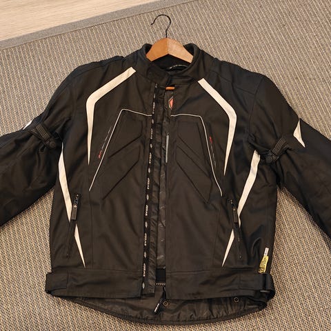 Siisti Sweepin takki, koko M. Menee alle 180cm. Takissa selkä, kyynär, hartiasuojat ja irroitettava toppavuori.