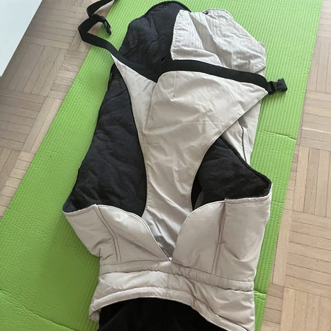 Toppamantteli, jossa pehmeä fleecevuori, koko L ollut kookkaalla mäyräkoiralla, pestävissä 40 asteessa