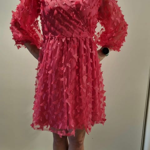 Uudenveroinen (kahdesti käytetty) kaunis mekko ja huivi. Merkki: Manon . Koko 8 joka vastaa S/M kokoa. Väri tummaan vadelmaan vivahtava, ei siis joulunpunainen. Mahdollista sovittaa. Mahd pk ostajalle. Ärräpussilla 6eur.