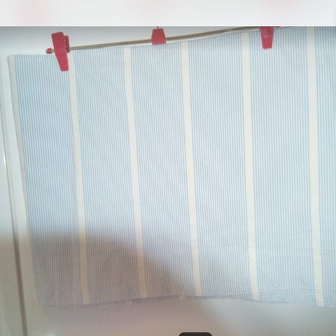 VERHOKAPPA. valtavan pitkä lev 45 x pit. 600 cm paksua puuvillaa. Vaal.siniset, valkoiset raidat 7 cm tankokuja,