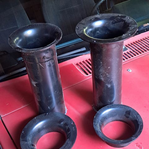 2x 6"aeroporttia 20mm vanerilyyn kiinnitettynä. Putkien pituus päätyjen kanssa 33cm. Levyn mitat 57cm x 36cm. Vain nouto, en pura putkia irti vanerista.