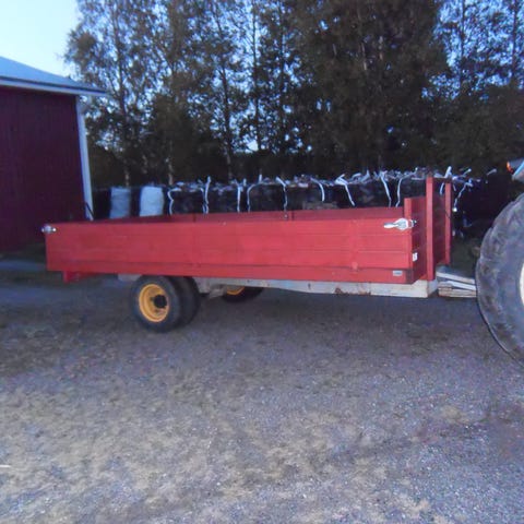 Metsäkärry, jossa asiallinen keinuteli, pyörivät karikat ja jatkettava aisa. Irrotettava pohja. Sopii monenlaiseen kuskaukseen.