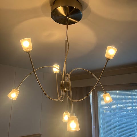 Metallinen harmaa kattovalaisin, halkaisija noin 38cm. Vain nouto