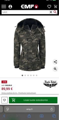 Vähän käytetty maastokuvioinen teddy takki. Takissa napit ja vyö, sivutaskut.