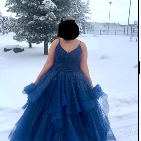 Mekko on lyhennetty n. 170 cm pituiselle sopivaksi (tanssin tennareissa). Koko sopii S-L. Ovh. 599e