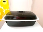 Antti Nurmesniemen suunnittelema vihreä Finel-vuoka on ISO ja painava. Koko 30 x 45 cm ja korkeus ilman kantta 11 cm. Tähän mahtuu isommatkin laatikot ja karjalanpaistit!