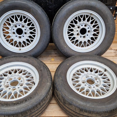 Esitteillä hyllyssä ollut kumi käynyt päällä ja painotettu mutta ei ole auton alla käynyt. 7x15 valkoinen mangels. Et lukua en älynny mutta liki 0 voi olla. 40e