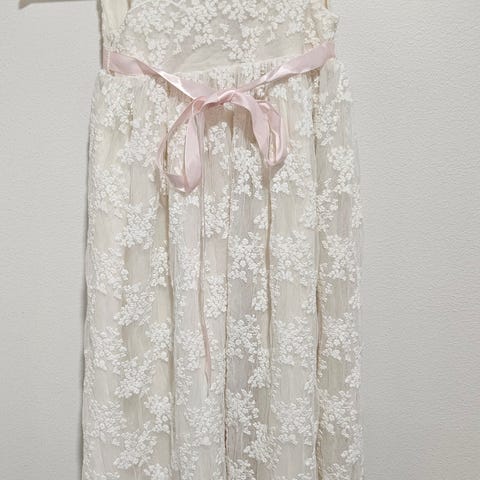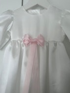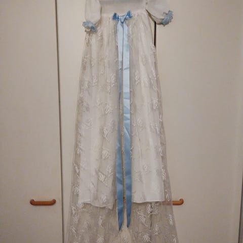 Kastemekko uusi.Ompelijan ompelema.Ei tullut käyttöön.kaunis valkoinen laskeutuva kangas. Hakusanat/ ristiäismekko.kastemekko, kastepuku, ristiäispuku, vauvan mekko, juhlamekko vauvalle, perinteinen kastemekko, brodyyrimekko, pitsimekko.