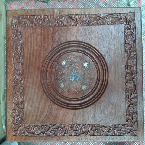 Pieni vanha pöytä, purettavissa levyksi ja jalaksi. Kansi on vähän kulunut, naarmuilla, mutta edelleen näyttää ihan hyvältä.