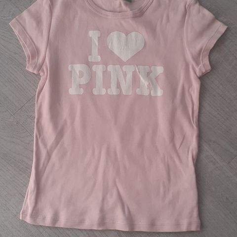 Pinkki Benetton t-paita kaikai 36 cm olka-helma 47 cm, laput leikattu irti. H&M pinkki hame 128 cm