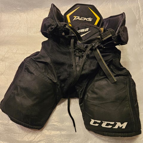 RBK:n JR-koon lätkähousut. Kiekkokoulussa otettu käyttöön ja muutama kausi pelattu näillä housuilla. Lahkeissa vähän repsottaa kangas, mutta ei haittaa pelaamista tai heikemmä suojaa.