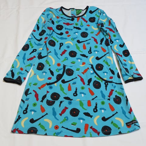 Villervallan herkullinen jätskimekko. Takana nepparit. Jotain hailakkaa jälkeä löysin syynäämällä, mutta ei näy käytännössä mihinkään. Kts. kuvat. Joustaa. Kokolappu leikattu, kokoarvio on 122.