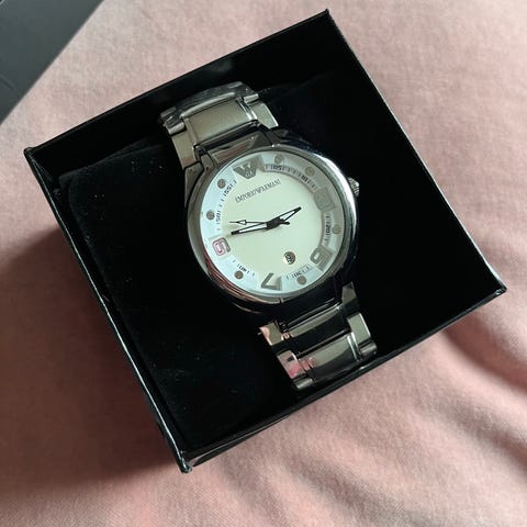 Hyvännäköinen kello ruskealla nahkarannekkeella. Paristo juuri vaihdettu (maaliskuu 2025). Kellossa käytön jälkiä kauttaaltaan mutta yleisilme siisti.