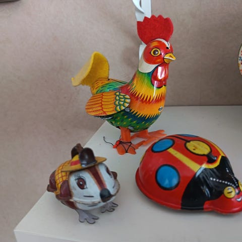 Hiano vanha Japan peltihärveli..ukko heiluu ja paukuttaa rumpuja melkosella pärinällä..k.25cm..