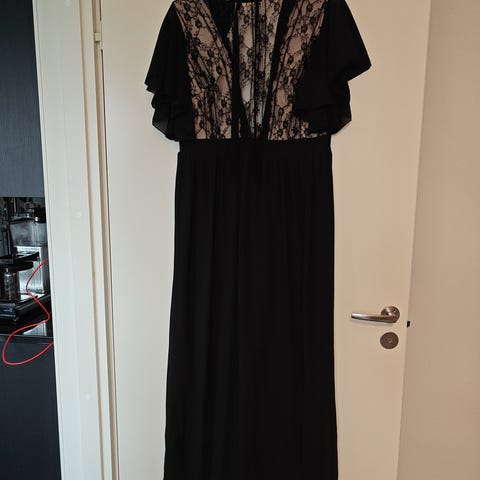 Mekon yläosa pitsikuvioutua ja glittersomisteinen. Mekko edestä lyhyempi, kuin takaa.