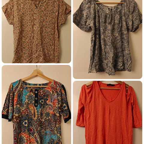 4 kpl raidallisia t-paitoja, Elea- ja Pola -merkkiset.