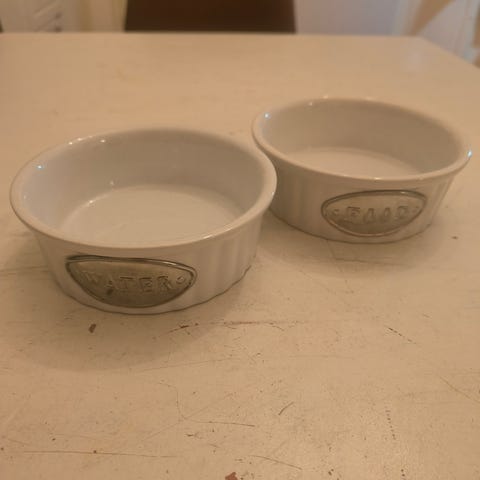 Musta lemmikin ruokakuppien teline. Kahdelle 14,2cm halkaisijan kupille. Postitus onnistuu, toimituskulut maksaa ostaja.