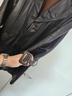 M: Tumman ruskea puolipitkä nahkatakki