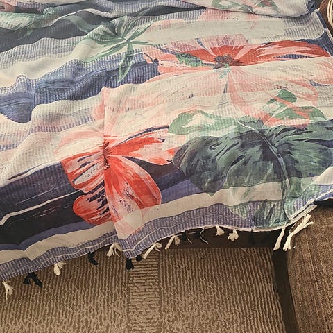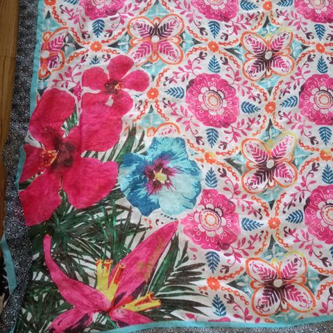 Kaunis kuviollinen Desiqual huivi. Koko n 2mx1m. Kuin uusi pieniä mustia samettipisteitä. Nouto Jätkäsaari, Toridiili tai postitus kustannukset ostajalle.
