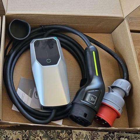 Latauslaitteessa on Type2-pistoke ja maksimissaan 11 kW latausteho, joka on monipuolisesti säädettävissä