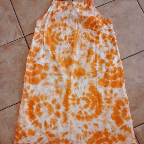 Ihana 100% puuvilla H&M mekko, koko 164. Raikas oranssi/valkoinen batik kuvio. Käy XS-kokoiselle naiselle/tytölle. Mitat kuvissa. Uusi, ilman hintalappua.