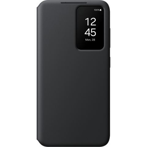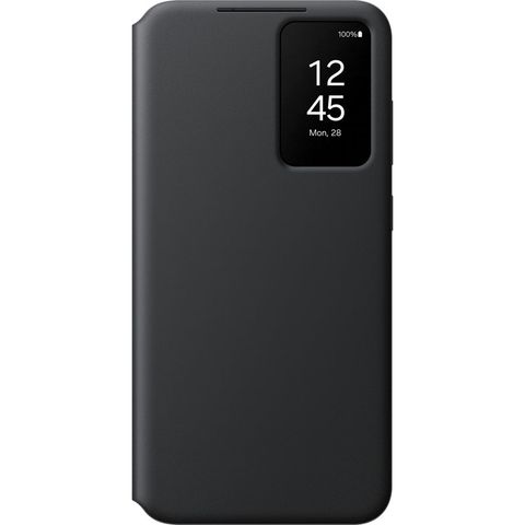 Samsung Galaxy S24 5G Smart View -lompakkokotelo suojaa puhelintasi edestä takaa ja antaa sinun tarkastella ilmoituksia läpinäkyvän ikkunan läpi. Siinä on myös kätevä lokero maksukortille.