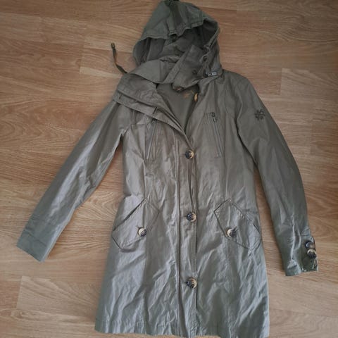 Harmaa House-merkkinen ohut kevättakki. Erinomaisessa kunnossa. Kuvan henkilö 160 cm pitkä.