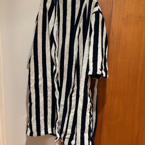 Myydään kuvan käyttämätön Marimekko Nimikko punavalkoraidallinen kylpytakki ja tossut. Kylpytakin koko m ja tossut 37-39. Kylpytakki on liian ison koon vuoksi jäänyt kokonaan käyttämättä, tossuja on käytetty. Tossut tulevat kaupanpäälle. Ovh. kylpytakki 149eur ja tossut 50eur. Hp. 79€ yhteensä. Ihanat kotiin, mökille ym. Kylpytakki sopii myös lahjaksi. Mieluiten nouto mutta voin tarvittaessa myös postittaa.