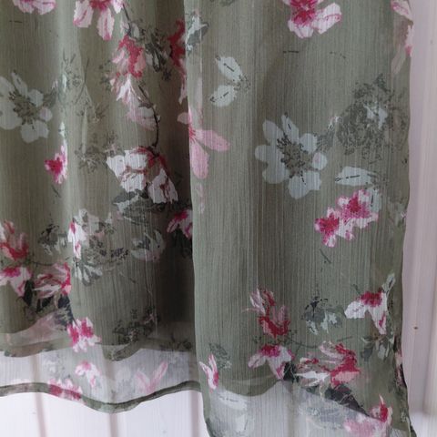Ihanan kevyt juhlatoppi jossa vuori. Kukkakuvioita ja metallilanka somisteita.