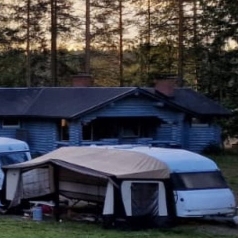 Asuntovaunun etuteltat, kesä- ja talviteltta, tykötarpeineen