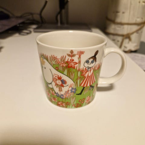 Käyttämätön tarralinen muumimuki Juhannus. Kesäsesonkimuki vuodelta 2016.