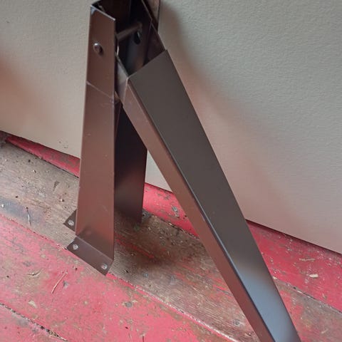 Pieni virhe jalan teleskooppikehyksessä, keskimmäinen osa ei pysy ylhäällä kun jalka on yläasennossa. Katso viimeiset kuvat. Ei ole kummoinen temppu korjata, mutta itsellä ei ole oikein aikaa. Kehyksen voi kiinnittää myös kiinteästi jos ei tarvitse korkeutta säätää.