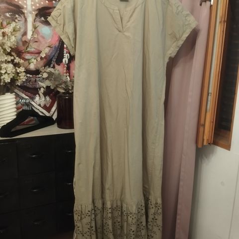 Kerran päällä pidetty maksimittainen juhlamekko. Halterneck kaulus, nepparilista takana. Kaunis syvän tummansininen ’snake’ kuvio. Laskeutuva kangas, mutta ei näy läpi. Väljä a-linjainen leikkaus. Kainalo-helma n. 114 cm. Myös upotetut taskut sivusaumoista. Ihana kevään juhliin.