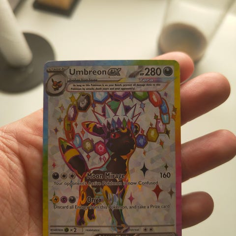 Pokemon Prismatic Evolutions Surprise Box promokortti. Avaamattomana vielä muoveissa.
