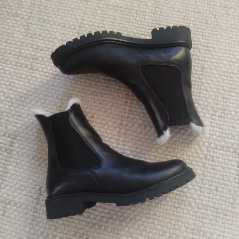 Kengät ovat hyvässä kunnossa: hieman normaalia käytön jälkeä, mutta ei mitään isompaa. Pohjat ehjät ja vetoketjut toimivat.